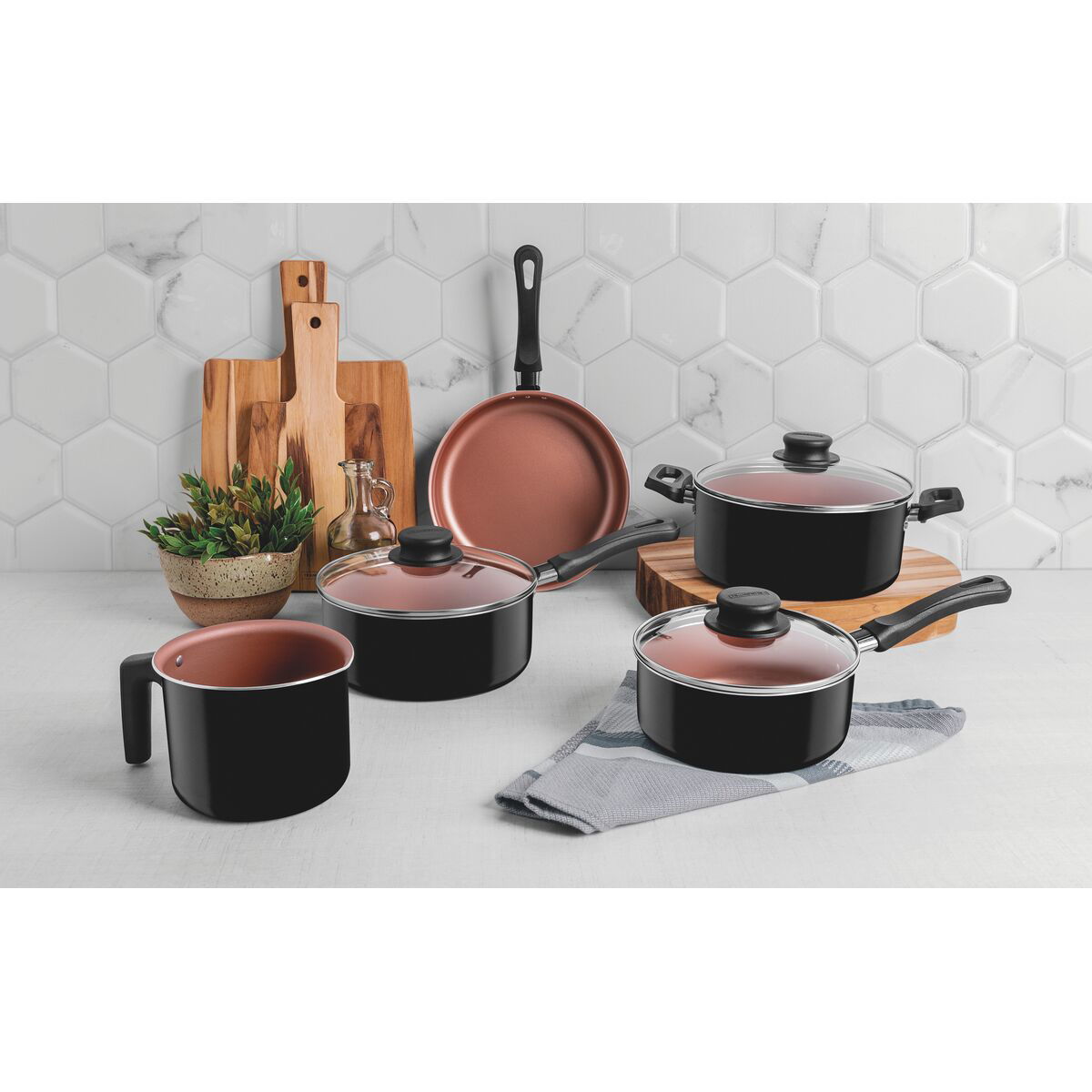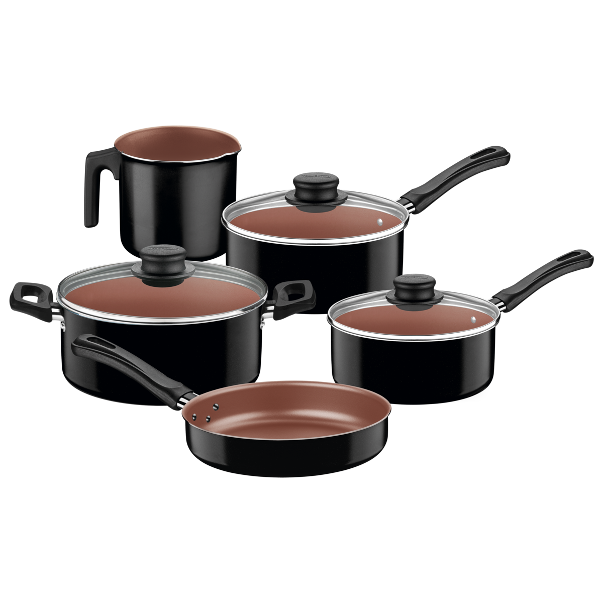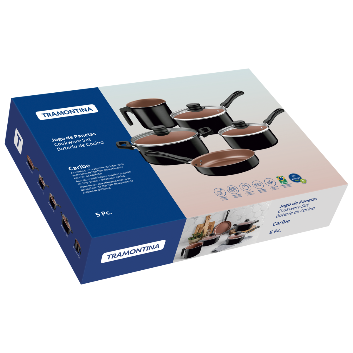 Jogo de Panelas Tramontina Caribe com Revestimento Interno em Antiaderente Starflon Max e Externo de Poliéster Preto 05 Peças